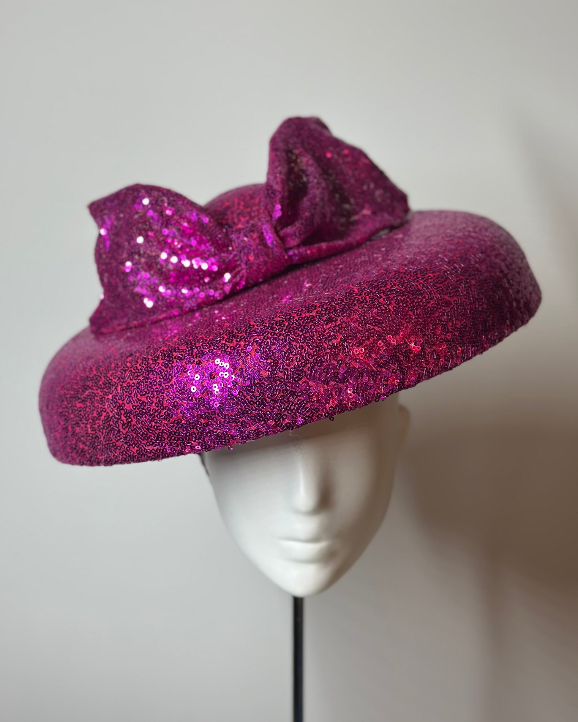 The sculpted form catches the light from every angle, while a dramatic oversized bow in matching sequin fabric delivers a knockout finish.
