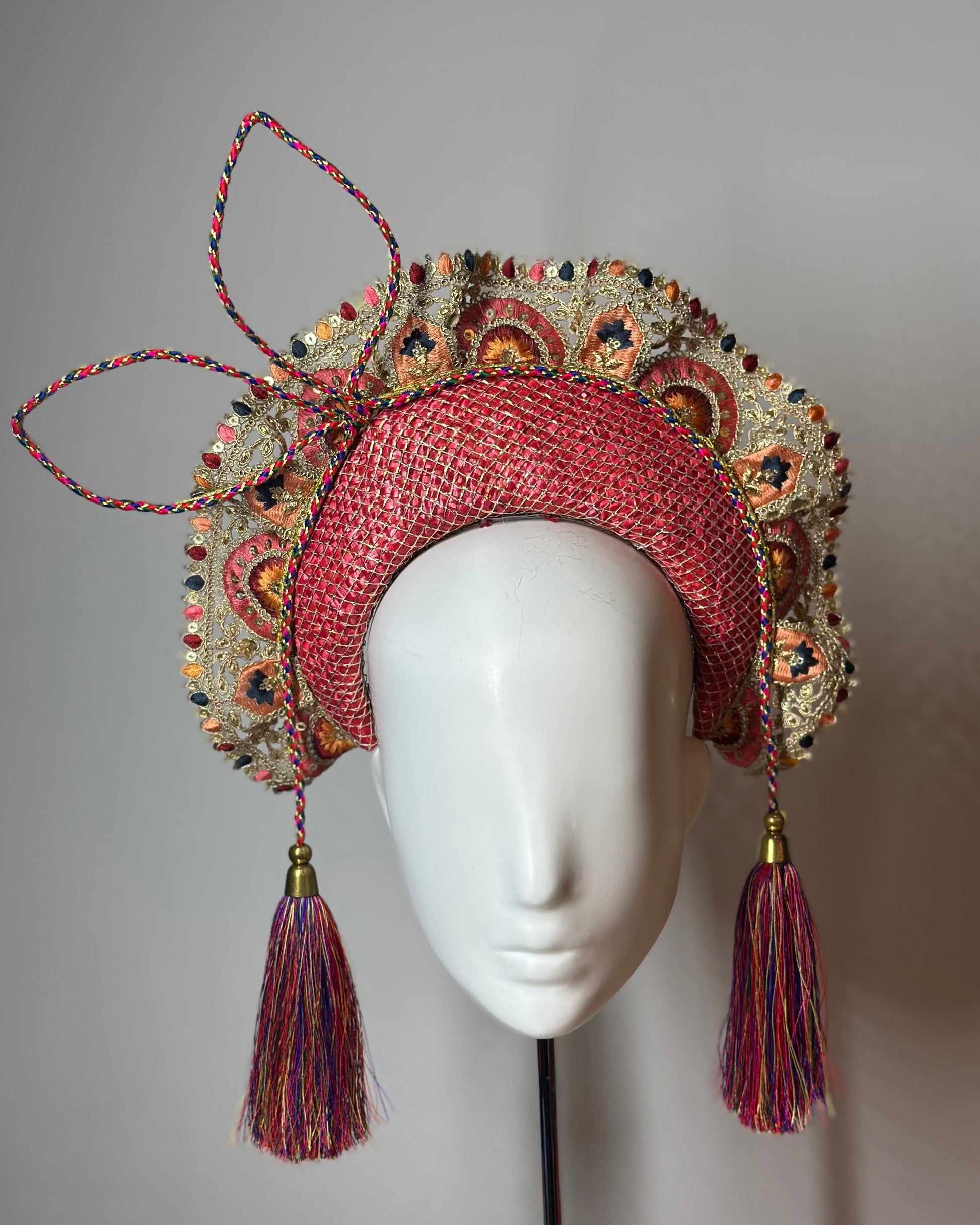 A dazzling celebration of color and culture, this striking headpiece is designed to turn heads.